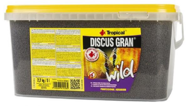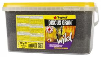 Jemná štruktúra granulátu, ktorá vplyvom vody rýchlo mäkne, spôsobuje, že je ryby z úlovkov ochotne akceptujú. V zložení krmiva sú obsiahnuté riasy: spirulina (Arthrospira platensis), chlorella (Chlorella vulgaris) a tiež Ascophyllum nodosum aj Laminaria digitata, známe ako riasy kelp. Nenasýtené mastné kyseliny, bielkoviny (bohaté na exogénne aminokyseliny), vitamíny, ktoré sú vo spiruline a chlorelle obsiahnuté, a tiež mikro a makro elementy z rias kelp (vrátane jódu, chrómu, selénu a železa) zaručujú rybám dokonalú kondíciu, intenzívny rast a vitalitu. Veľký podiel zložiek rastlinného pôvodu, vrátane rias a ovocia, odráža stravu terčovcov v ich prirodzenom prostredí. Pri pravidelnom kŕmení granulami TROPICAL DISCUS GRAN WILD dostávajú ryby veľkú dávku chlorofylu - zeleného farbiva, ktorého koncentrovaným zdrojom sú spirulina a chlorella. Chlorofyl obmedzuje rozvoj nežiaducich baktérií v tráviacom trakte, predchádzajúce zápalovým stavom a spoločne so zeolitom podporuje vylučovanie toxínov z organizmu rýb. Imunitný systém rýb podporujú v boji s patogénmi účinné látky cesnaku a spiruliny. Karotenoidy, pochádzajúce okrem iného z krilu a červenej papriky a ďalej i dodatok astaxantínu, udržujú prirodzené farby rýb a predchádzajú ich vyblednutiu.