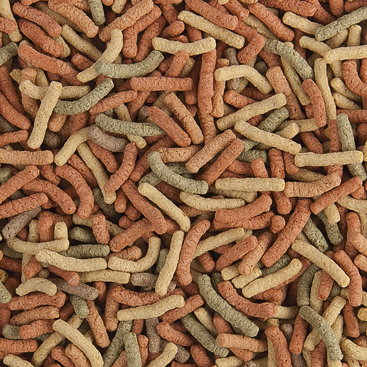 Kompletné krmivo vo forme plávajúcich tyčiniek pre kapry koi, zlaté rybky a ďalšie okrasné kaprovité ryby chované v záhradných jazierkach a nádržiach
